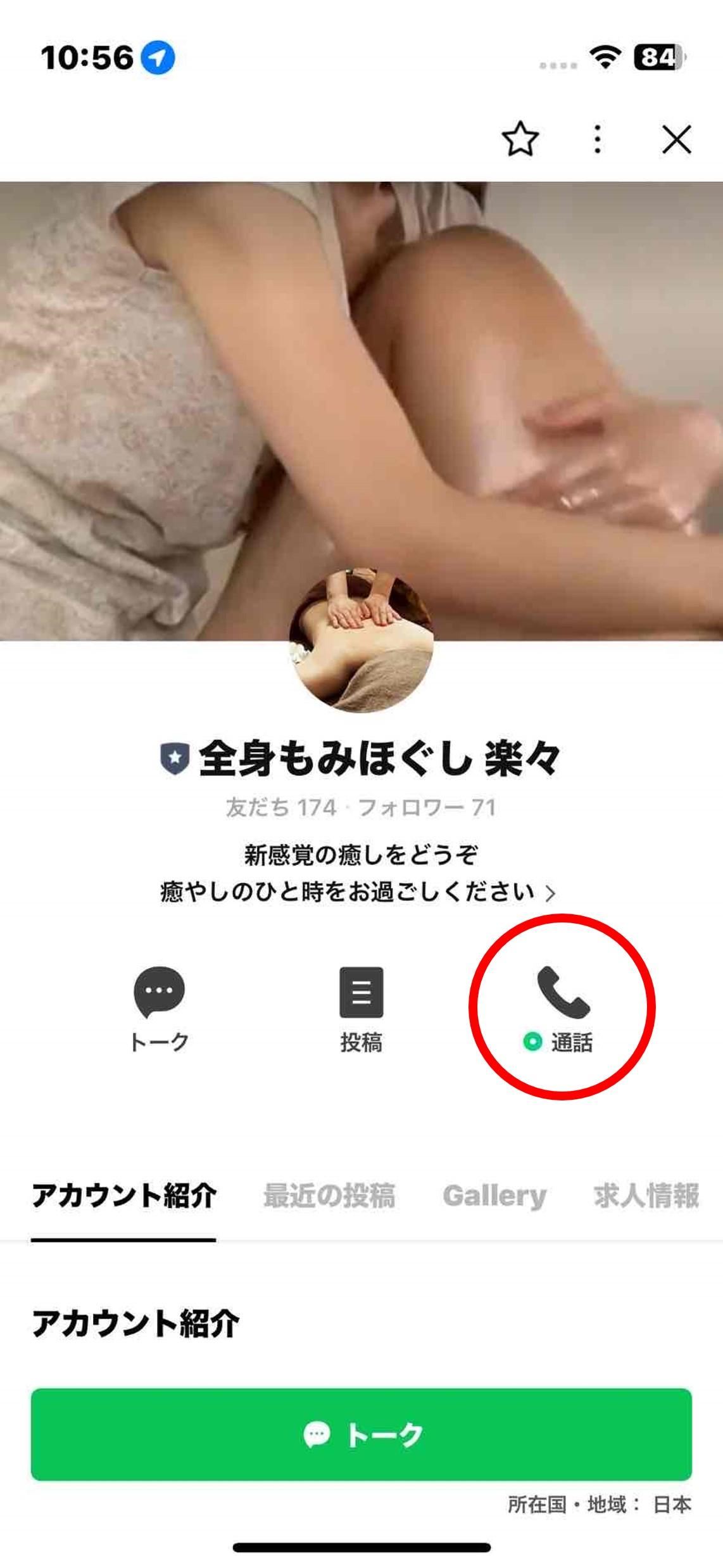 ① 『ご予約はこちら』を押していただき、当店LINE公式アカウントを開いていただきます。 ② 通話ボタン(受話器マーク)を押していただきますと、通話料無料でつながります。 ③ ご希望の日時とコースをお伝えください。確認後に折り返しのご連絡を差し上げますので、お電話番号をお知らせください。 ④ セラピストの空き状況、到着予定時間を確認して折り返しのご連絡を差し上げます。